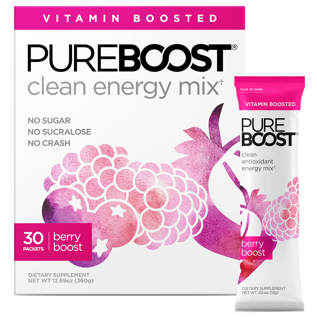 Boosted by B12 and natural green tea caffeine, delivers a surge of up to 6 hours of powerful, pure energy with NO crash. Pureboost contains no sugar, no sucralose and no artificial flavors or colors.